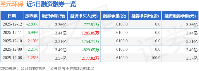 证券之星消息,截至2025年12月12日收盘,圣元环保(300867)报收于21.18元,下跌2.89%,换手率7.05%,成交量13.51万手,成交额2.87亿元。