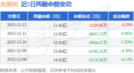 证券之星消息,12月12日,太辰光(300570)融资买入3.26亿元,融资偿还2.75亿元,融资净买入5140.57万元,融资余额12.41亿元。