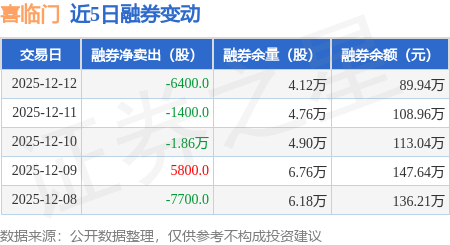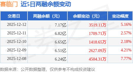 证券之星消息,12月12日,喜临门(603008)融资买入7345.63万元,融资偿还3807.51万元,融资净买入3538.12万元,融资余额7.16亿元,近3个交易日已连续净买入累计6705.17万元,近20个交易日中有18个交易日出现融资净买入。