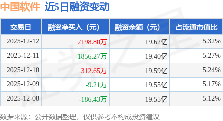 证券之星消息,12月12日,中国软件(600536)融资买入6161.71万元,融资偿还3962.91万元,融资净买入2198.8万元,融资余额19.62亿元。