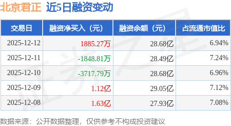 证券之星消息,12月12日,北京君正(300223)融资买入4.03亿元,融资偿还3.84亿元,融资净买入1885.27万元,融资余额28.68亿元。