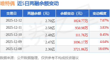 证券之星消息,12月12日,唯特偶(301319)融资买入5434.36万元,融资偿还3609.59万元,融资净买入1824.77万元,融资余额2.76亿元,近3个交易日已连续净买入累计2887.51万元,近20个交易日中有13个交易日出现融资净买入。
