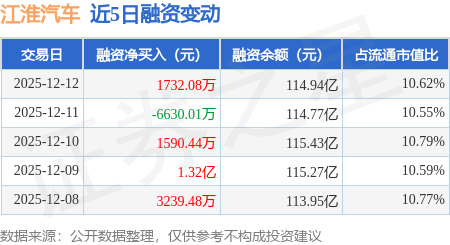 证券之星消息,12月12日,江淮汽车(600418)融资买入2.86亿元,融资偿还2.68亿元,融资净买入1732.08万元,融资余额114.94亿元,近20个交易日中有13个交易日出现融资净买入。