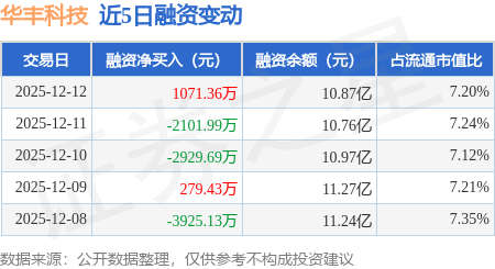 证券之星消息,12月12日,华丰科技(688629)融资买入1.03亿元,融资偿还9204.91万元,融资净买入1071.36万元,融资余额10.87亿元。