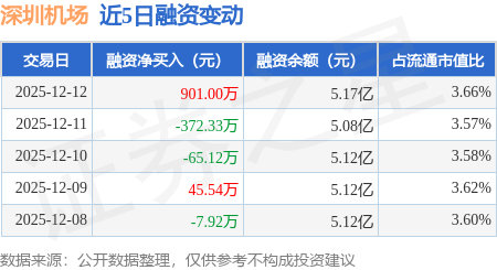 证券之星消息,12月12日,深圳机场(000089)融资买入1428.88万元,融资偿还527.88万元,融资净买入901.0万元,融资余额5.17亿元。