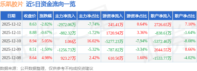12月12日的资金流向数据方面,主力资金净流出2972.06万元,占总成交额7.74%,游资资金净流入245.41万元,占总成交额0.64%,散户资金净流入2726.65万元,占总成交额7.1%。