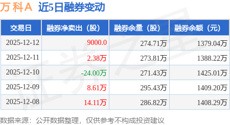 证券之星消息,12月12日,万 科A(000002)融资买入1.76亿元,融资偿还1.69亿元,融资净买入713.55万元,融资余额33.33亿元。