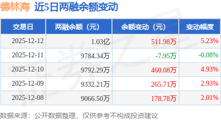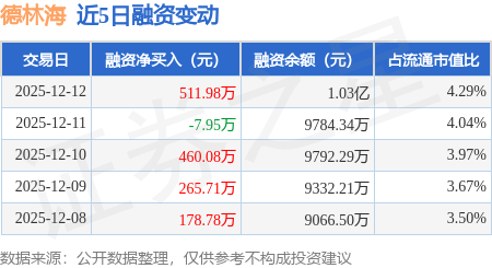 证券之星消息,12月12日,德林海(688069)融资买入632.3万元,融资偿还120.32万元,融资净买入511.98万元,融资余额1.03亿元,近20个交易日中有15个交易日出现融资净买入。