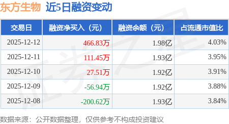 证券之星消息,12月12日,东方生物(688298)融资买入892.17万元,融资偿还425.33万元,融资净买入466.83万元,融资余额1.98亿元,近3个交易日已连续净买入累计605.79万元,近20个交易日中有12个交易日出现融资净买入。