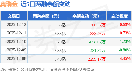 证券之星消息,12月12日,奥瑞金(002701)融资买入3756.04万元,融资偿还3427.25万元,融资净买入328.79万元,融资余额5.33亿元。