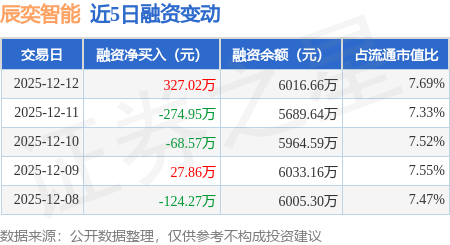 证券之星消息,12月12日,辰奕智能(301578)融资买入475.99万元,融资偿还148.97万元,融资净买入327.02万元,融资余额6016.66万元。