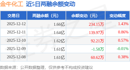 证券之星消息,12月12日,金牛化工(600722)融资买入771.55万元,融资偿还537.4万元,融资净买入234.15万元,融资余额1.66亿元,近3个交易日已连续净买入累计466.33万元。