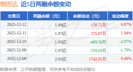 证券之星消息,12月12日,恒而达(300946)融资买入2069.89万元,融资偿还1899.16万元,融资净买入170.72万元,融资余额1.99亿元。