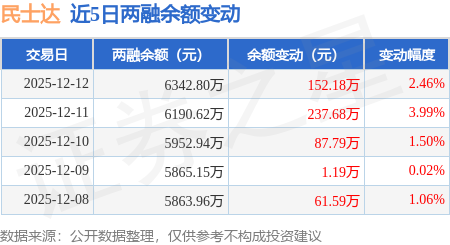 证券之星消息,12月12日,民士达(920394)融资买入311.11万元,融资偿还158.93万元,融资净买入152.18万元,融资余额6342.8万元,近3个交易日已连续净买入累计477.65万元。