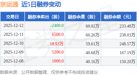 证券之星消息,12月12日,京运通(601908)融资买入1995.48万元,融资偿还1856.48万元,融资净买入139.0万元,融资余额2.49亿元。