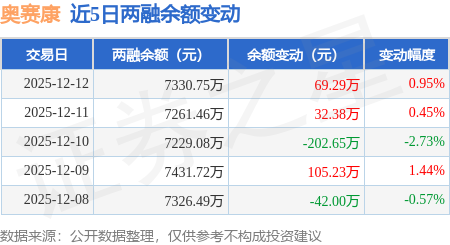 证券之星消息,12月12日,奥赛康(002755)融资买入570.15万元,融资偿还502.21万元,融资净买入67.94万元,融资余额7329.06万元。