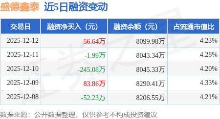 证券之星消息,12月12日,盛德鑫泰(300881)融资买入492.99万元,融资偿还436.35万元,融资净买入56.64万元,融资余额8099.98万元。