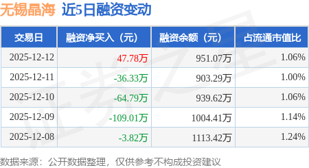 证券之星消息,12月12日,无锡晶海(920547)融资买入114.38万元,融资偿还66.6万元,融资净买入47.78万元,融资余额951.07万元。