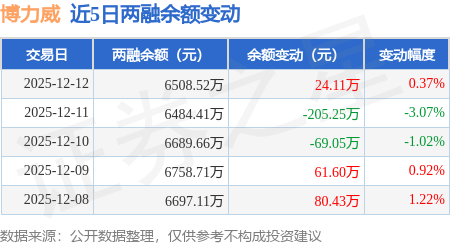 证券之星消息,12月12日,博力威(688345)融资买入229.47万元,融资偿还205.36万元,融资净买入24.11万元,融资余额6508.52万元。