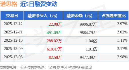证券之星消息,12月12日,诺思格(301333)融资买入1779.94万元,融资偿还1757.85万元,融资净买入22.08万元,融资余额9906.87万元。