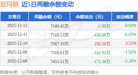 证券之星消息,12月12日,亚玛顿(002623)融资买入267.23万元,融资偿还268.13万元,融资净卖出0.9万元,融资余额7109.45万元。
