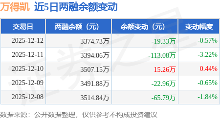 证券之星消息,12月12日,万得凯(301309)融资买入190.42万元,融资偿还209.75万元,融资净卖出19.33万元,融资余额3374.73万元。