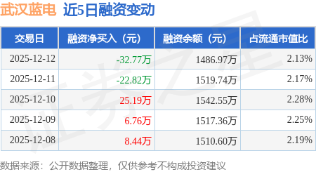 证券之星消息,12月12日,武汉蓝电(920779)融资买入110.64万元,融资偿还143.41万元,融资净卖出32.77万元,融资余额1486.97万元,近20个交易日中有11个交易日出现融资净买入。