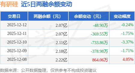 证券之星消息,12月12日,有研硅(688432)融资买入835.9万元,融资偿还888.39万元,融资净卖出52.49万元,融资余额2.06亿元。