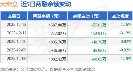 证券之星消息,12月12日,大宏立(300865)融资买入171.37万元,融资偿还226.38万元,融资净卖出55.01万元,融资余额4687.8万元。