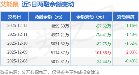 证券之星消息,12月12日,艾能聚(920770)融资买入326.32万元,融资偿还383.94万元,融资净卖出57.62万元,融资余额4899.59万元。