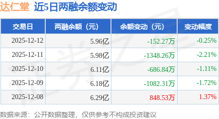 证券之星消息,12月12日,达仁堂(600329)融资买入1273.75万元,融资偿还1421.89万元,融资净卖出148.13万元,融资余额5.86亿元。