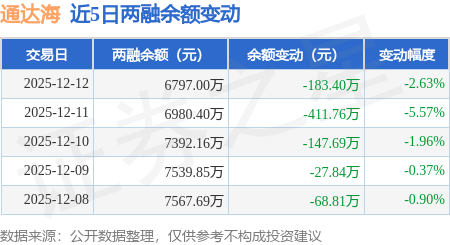 证券之星消息,12月12日,通达海(301378)融资买入271.23万元,融资偿还454.63万元,融资净卖出183.4万元,融资余额6797.0万元。