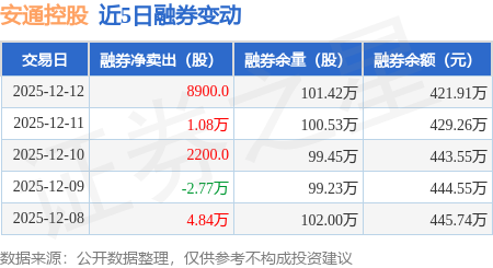 证券之星消息,12月12日,安通控股(600179)融资买入3565.29万元,融资偿还3769.82万元,融资净卖出204.53万元,融资余额6.26亿元,近20个交易日中有12个交易日出现融资净买入。
