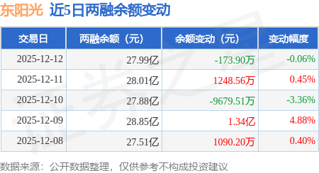 证券之星消息,12月12日,东阳光(600673)融资买入1.18亿元,融资偿还1.2亿元,融资净卖出257.61万元,融资余额27.9亿元。