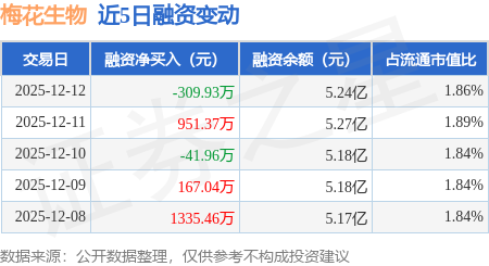 证券之星消息,12月12日,梅花生物(600873)融资买入3389.49万元,融资偿还3699.43万元,融资净卖出309.93万元,融资余额5.24亿元,近20个交易日中有12个交易日出现融资净买入。
