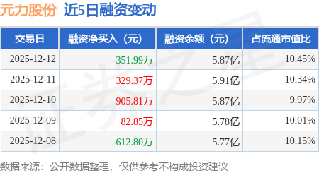 证券之星消息,12月12日,元力股份(300174)融资买入1624.1万元,融资偿还1976.09万元,融资净卖出351.99万元,融资余额5.87亿元,近20个交易日中有15个交易日出现融资净买入。