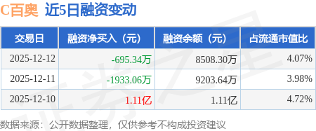 证券之星消息,12月12日,C百奥(688796)融资买入4355.61万元,融资偿还5050.95万元,融资净卖出695.34万元,融资余额8508.3万元。