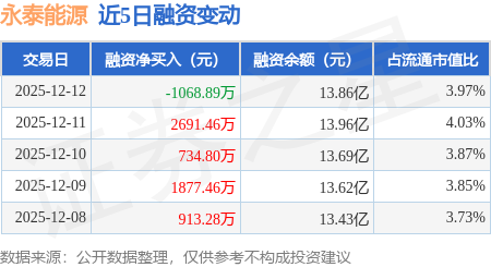 证券之星消息,12月12日,永泰能源(600157)融资买入2.2亿元,融资偿还2.31亿元,融资净卖出1068.89万元,融资余额13.86亿元。