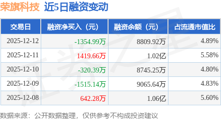 证券之星消息,12月12日,荣旗科技(301360)融资买入508.24万元,融资偿还1863.23万元,融资净卖出1354.99万元,融资余额8809.92万元。