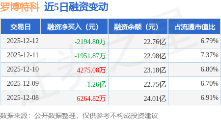 证券之星消息,12月12日,罗博特科(300757)融资买入1.76亿元,融资偿还1.98亿元,融资净卖出2194.8万元,融资余额22.76亿元。