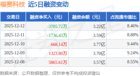 证券之星消息,12月12日,福赛科技(301529)融资买入4061.86万元,融资偿还7767.58万元,融资净卖出3705.72万元,融资余额3.22亿元,近20个交易日中有12个交易日出现融资净买入。