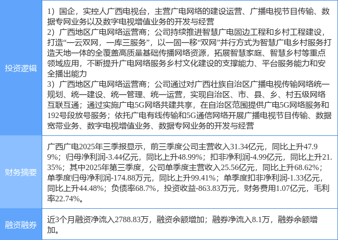 该股为广西概念,数字乡村,广电概念热股,当日广西概念概念上涨1.13%,数字乡村概念上涨0.11%。