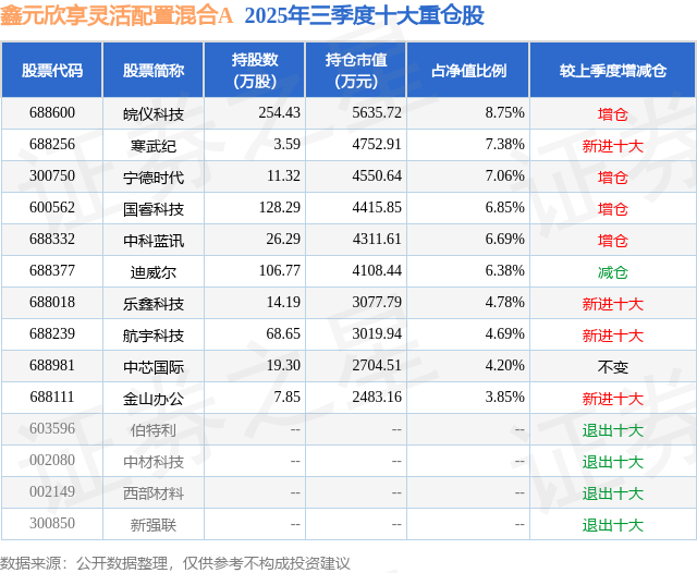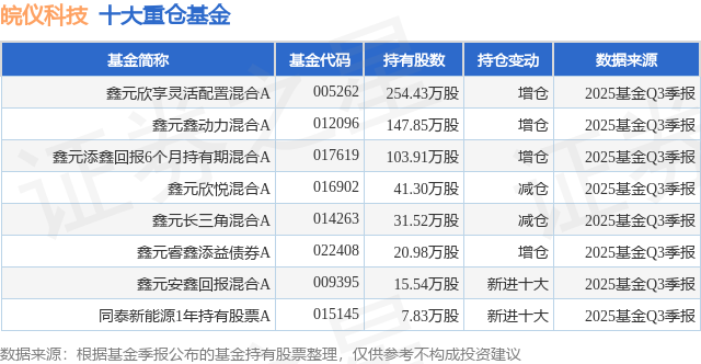 重仓皖仪科技的公募基金请见下表:
