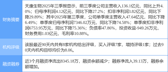 2025年10月31日,开源证券研究员陈雪丽,王高展发布了对天康生物的研报《公司信息更新报告:饲料业务量利齐增,生猪养殖降本增效并购扩张》,该研报对天康生物给出“买入”评级。研报中预计公司2025-2027年归母净利润分别为4.17/7.02/9.66(2025-2027年原预测分别为6.77/9.13/15.76)亿元,对应EPS分别为0.31/0.51/0.71元,当前股价对应PE为24.2/14.4/10.5倍。公司饲料业务量利齐增经营向好,生猪养殖持续推进降本增效,蛋白油脂等业务盈利持续修复,维持“买入”评级。证券之星数据中心根据近三年发布的研报数据计算,该研报作者对此股的盈利预测准确度为32.69%。
