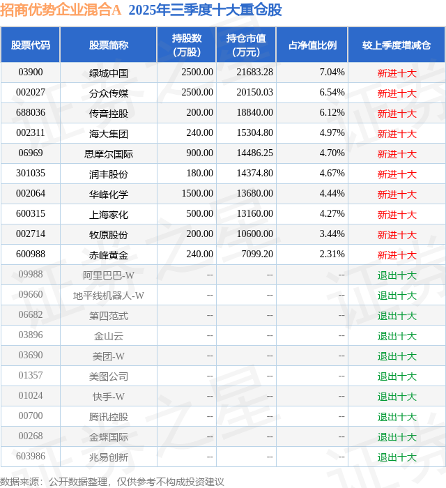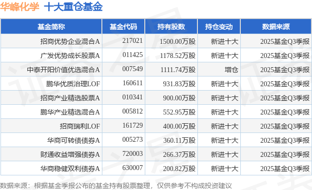 根据2025基金Q3季报公募基金重仓股数据,重仓该股的公募基金共43家,其中持有数量最多的公募基金为招商基金的招商优势企业混合A。招商优势企业混合A目前规模为21.05亿元,最新净值5.5221(12月12日),较上一交易日上涨1.7%,近一年上涨15.35%。该公募基金现任基金经理为陆文凯。陆文凯在任的基金产品包括:招商瑞利灵活配置混合(LOF)A,管理时间为2022年8月20日至今,期间收益率为11.03%;招商产业升级1年持有期混合A,管理时间为2023年5月29日至今,期间收益率为-8.49%;招商远见回报3年定开混合,管理时间为2023年12月4日至今,期间收益率为19.66%;招商产业精选股票A,管理时间为2024年5月31日至今,期间收益率为29.9%。