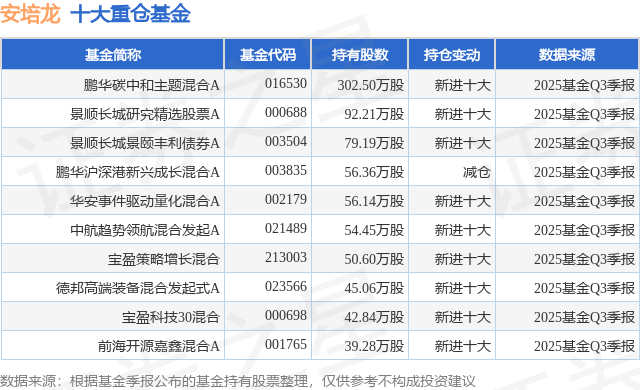 根据2025基金Q3季报公募基金重仓股数据,重仓该股的公募基金共40家,其中持有数量最多的公募基金为鹏华基金的鹏华碳中和主题混合A。鹏华碳中和主题混合A目前规模为28.3亿元,最新净值1.8678(12月12日),较上一交易日下跌0.22%,近一年上涨65.26%。该公募基金现任基金经理为闫思倩。闫思倩在任的基金产品包括:鹏华沪深港新兴成长混合A,管理时间为2022年5月7日至今,期间收益率为47.11%;鹏华新能源汽车混合A,管理时间为2022年7月26日至今,期间收益率为19.36%;鹏华科技驱动混合发起式A,管理时间为2024年8月29日至今,期间收益率为39.42%。