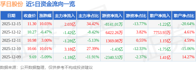 证券之星消息,截至2025年12月15日收盘,孚日股份(002083)报收于11.3元,上涨10.03%,涨停,换手率5.63%,成交量53.3万手,成交额5.91亿元。