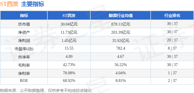 ST西发2025年三季报显示,前三季度公司主营收入3.25亿元,同比上升8.57%;归母净利润1.45亿元,同比上升503.98%;扣非净利润9195.09万元,同比上升436.9%;其中2025年第三季度,公司单季度主营收入1.28亿元,同比上升20.26%;单季度归母净利润1.19亿元,同比上升754.46%;单季度扣非净利润8371.26万元,同比上升500.55%;负债率16.67%,投资收益-220.25万元,财务费用-372.64万元,毛利率42.73%。ST西发(000752)主营业务:啤酒生产与销售。