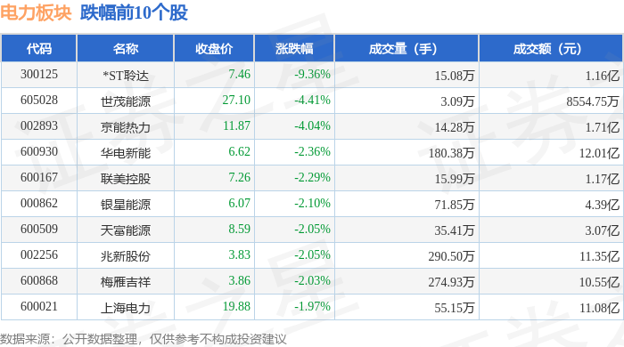 证券之星消息,12月15日电力板块较上一交易日下跌0.05%,*ST聆达领跌。当日上证指数报收于3867.92,下跌0.55%。深证成指报收于13112.09,下跌1.1%。电力板块个股涨跌见下表: