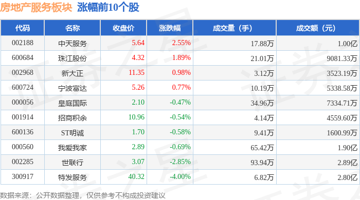 证券之星消息,12月15日房地产服务板块较上一交易日下跌1.2%,南都物业领跌。当日上证指数报收于3867.92,下跌0.55%。深证成指报收于13112.09,下跌1.1%。房地产服务板块个股涨跌见下表: